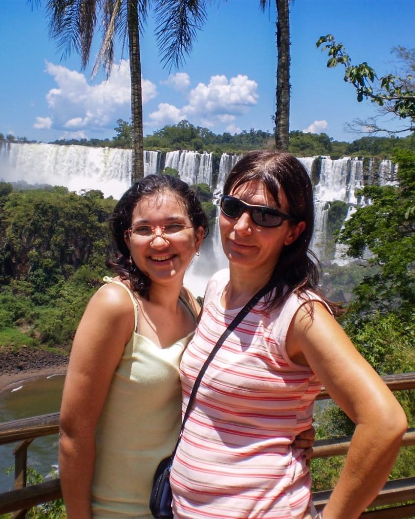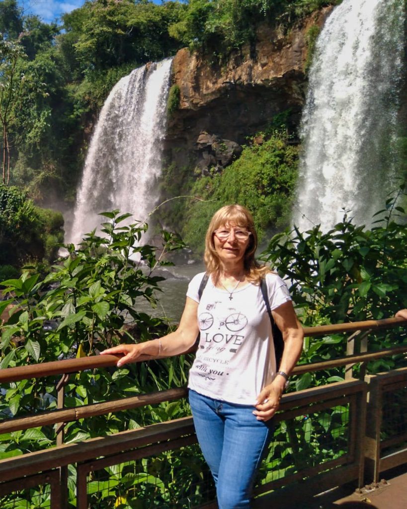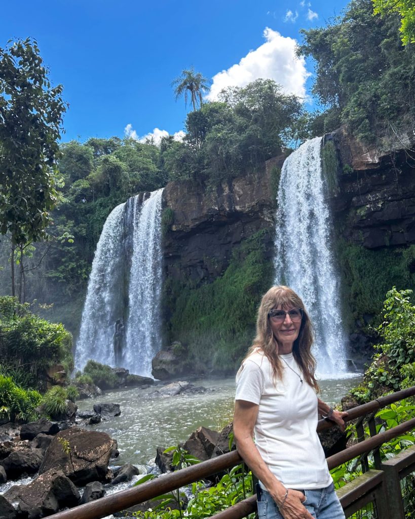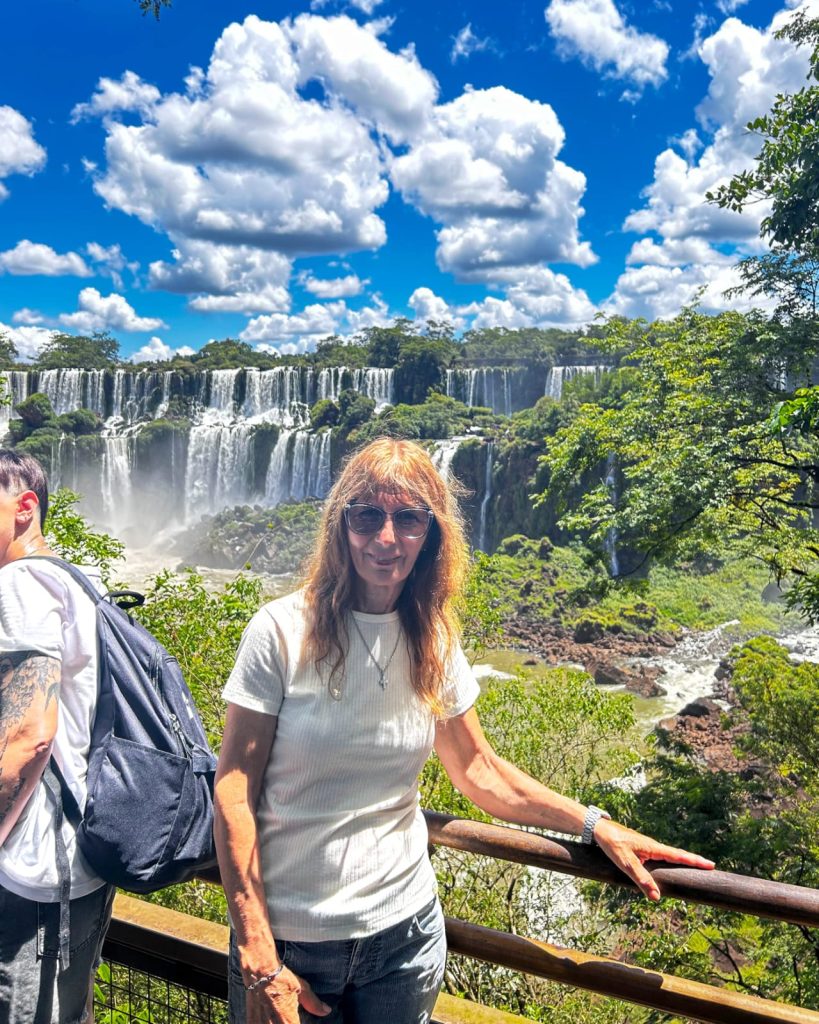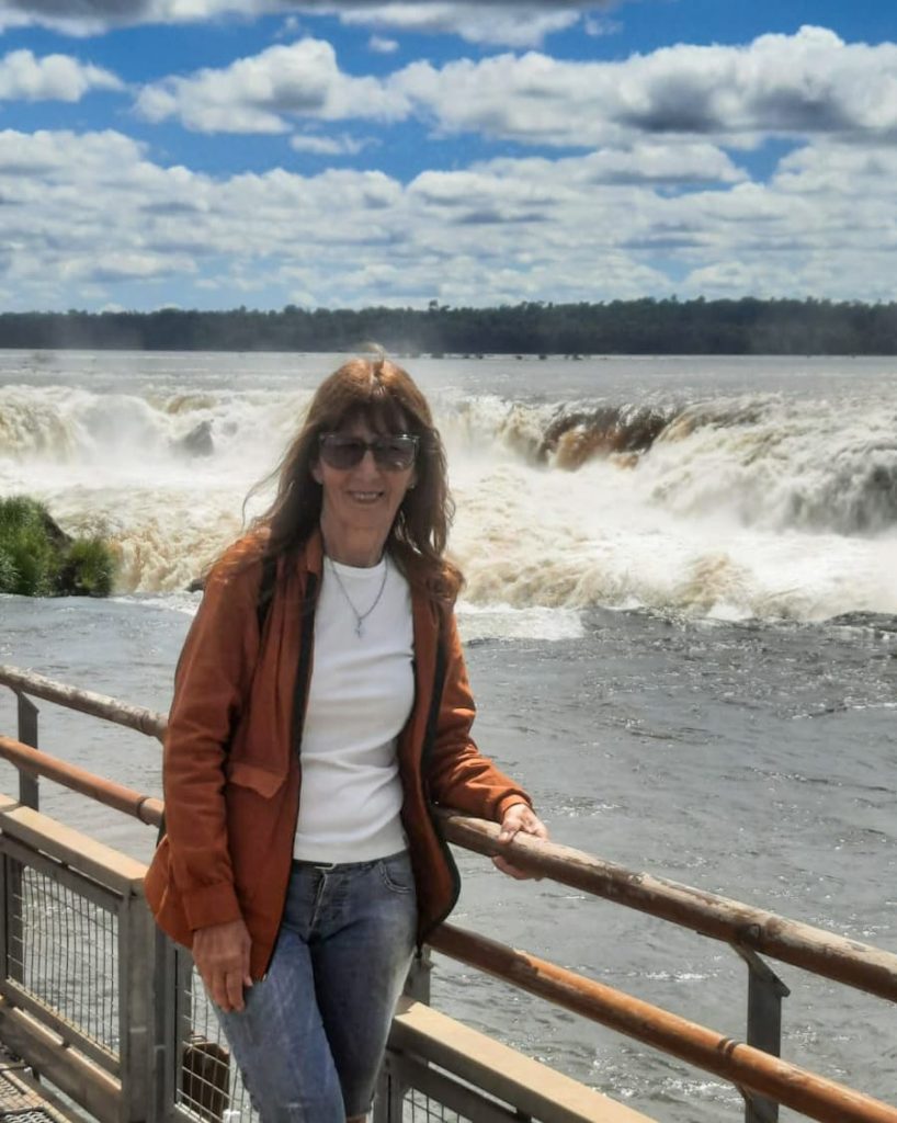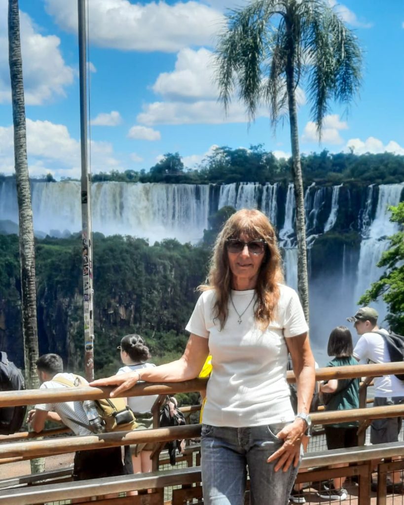 Sus visitas quedaron registradas en fotografías que documentan no sólo el paisaje, sino también su historia familiar: desde imágenes junto a su hija embarazada en sus primeros viajes, hasta fotos actuales acompañada por sus nietos recorriendo las pasarelas del Parque Nacional Iguazú.